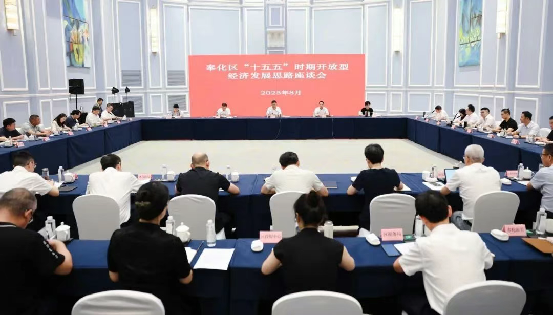 On the afternoon of August 21st, Hu Yongguang, the Secretary of the District Committee, presided over a symposium on the development ideas of open economy during the "15th Five Year Plan" period in Fenghua District, inviting representatives of entrepreneurs to provide suggestions and strategies for the economic development of Fenghua during the "15th Five Year Plan" period. Wei Jiangen, Chen Xiao, Gu Xin, Shao Pingping and others attended.