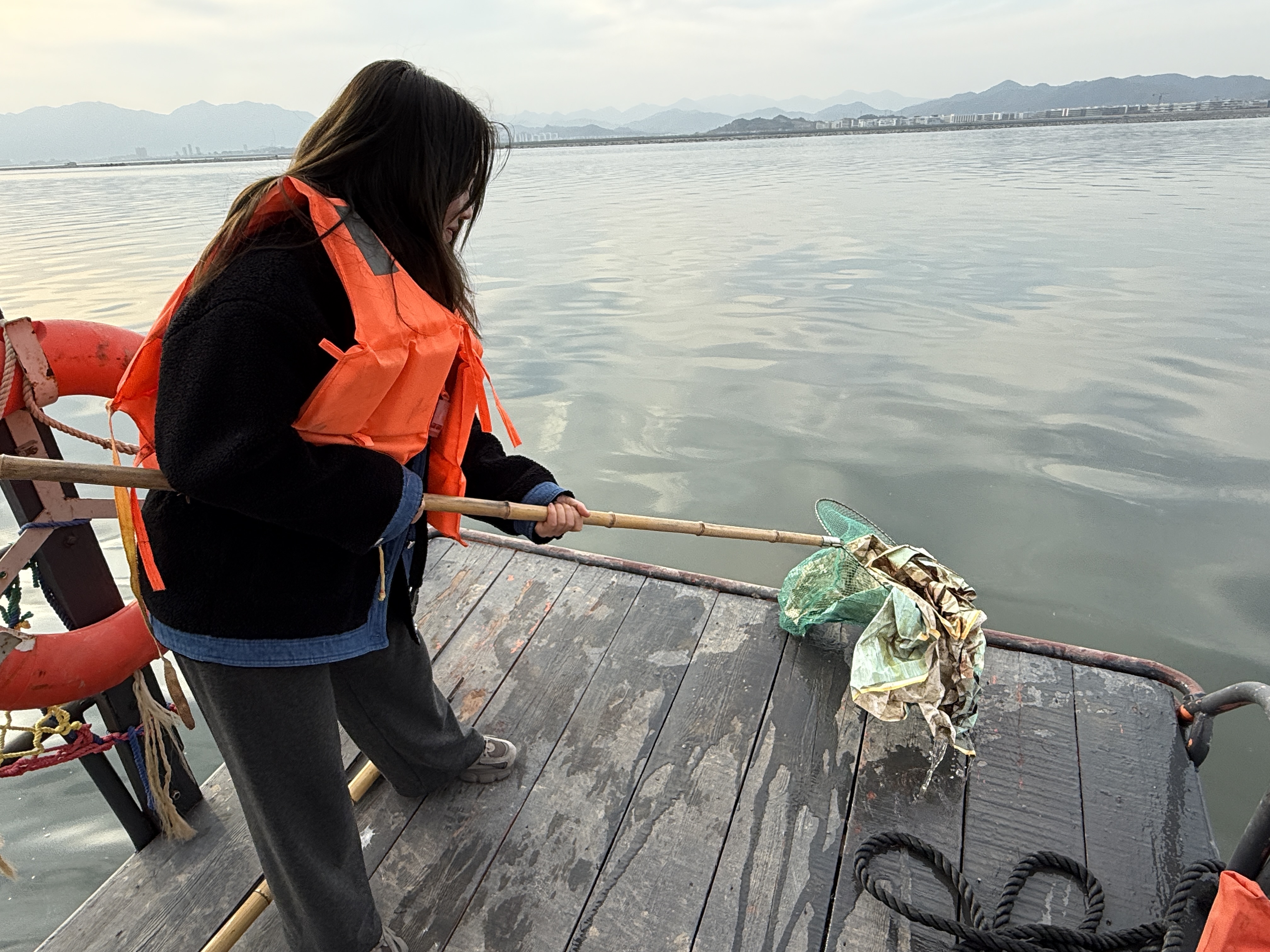 Subsequently, volunteers and staff boarded ships together to carry out offshore floating garbage cleaning operations. The operation team sailed slowly along the coastline, scanning the sea surface with focused attention. Soon, they spotted their first batch of targets—plastic bottles, foam fragments and discarded fishing nets floating with the tides.